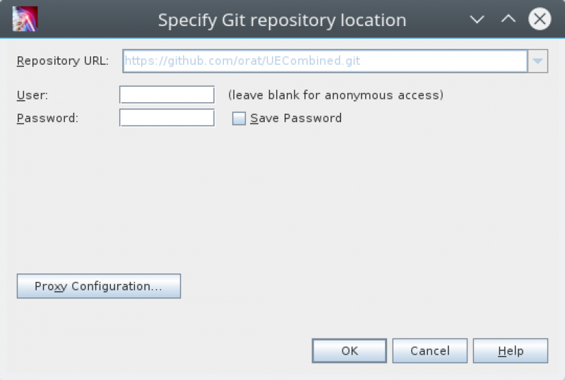 The blue color shows that the files are changed. You can push the changes to the repository executing the „push“ action in the context menu. A dialog is opend and you can input your credentials for the repository.
